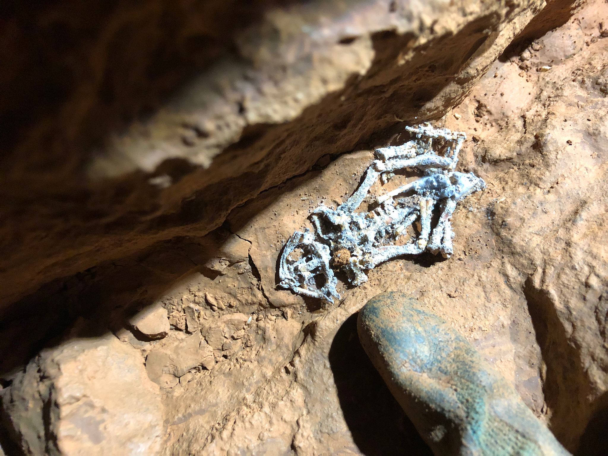 Une galerie de belles dimensions, assez confortable, ponctuée de quelques passages techniques : passages étroits, passages à plat ventre ou à quatre pattes (laminoir), petits ressauts à monter et descendre sur corde, … . Une galerie parfaite pour faire de l’initiation. Une partie du groupe s’est même aventurée dans un petit réseau supérieur dans lequel nous avons pu observer une continuité sableuse non pénétrable, mais aussi des papillons morts et un squelette de batracien (à priori). Une occasion pour le groupe de s’interroger sur pourquoi sont-ils là ? Quel était le sens de l’eau dans cette galerie ?