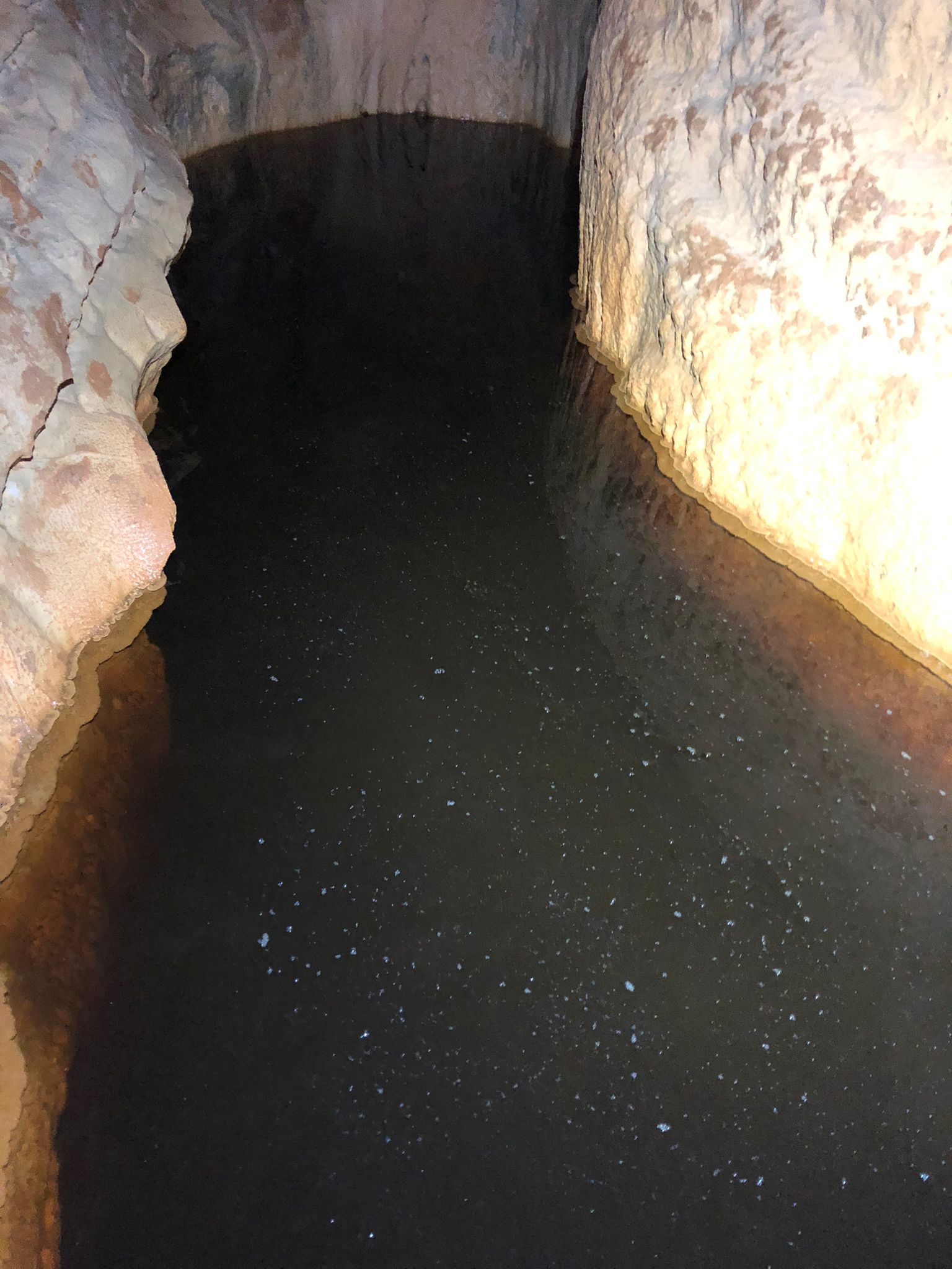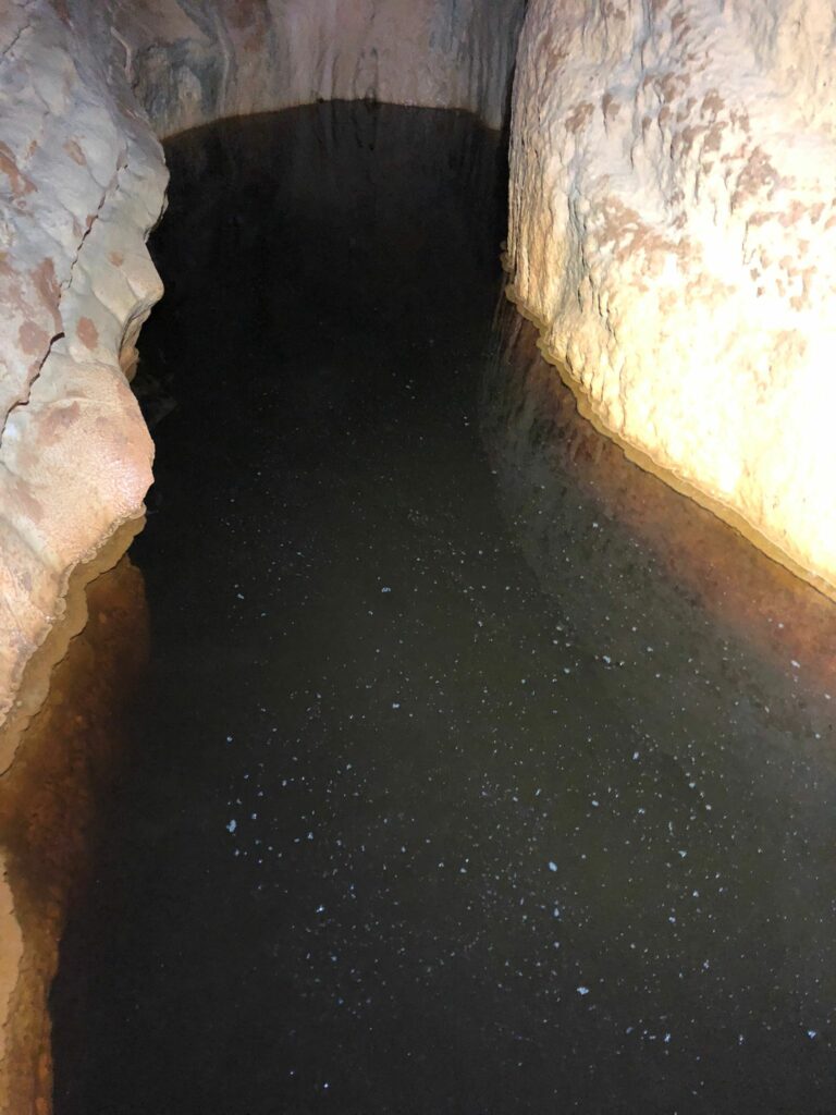Nous avons aussi pu constater au fond de la galerie principale un gour rempli d’une eau noirâtre… du guano ? une pollution ? autre chose ? Celle-ci mériterait un prélèvement pour comprendre de quoi il s’agit exactement.